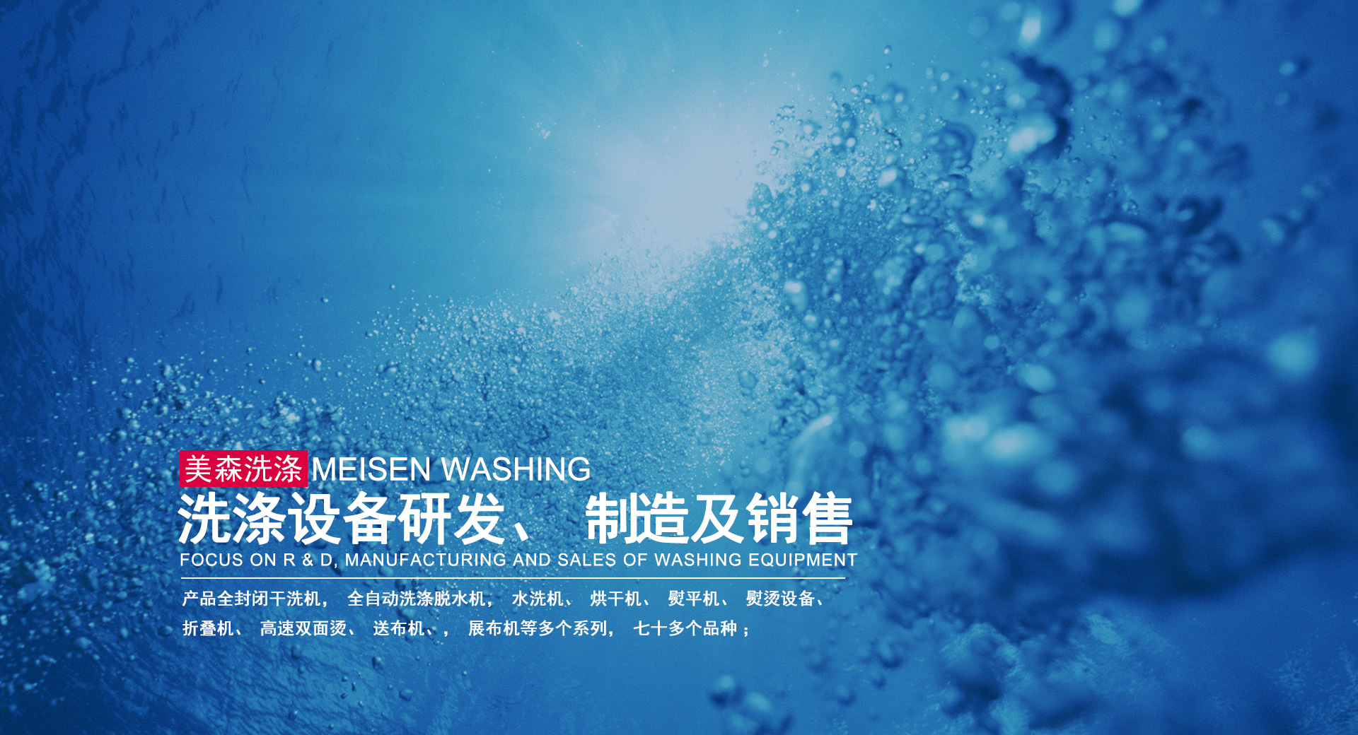 全封閉干洗機,全自動洗滌脫水機,水洗機、烘干機、熨平機、熨燙設備、折疊機、高速雙面燙、送布機、展布機等多個系列,七十多個品種;